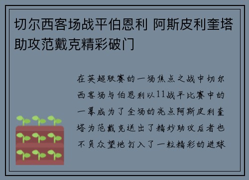 在英超联赛的一场焦点之战中,切尔西客场与...